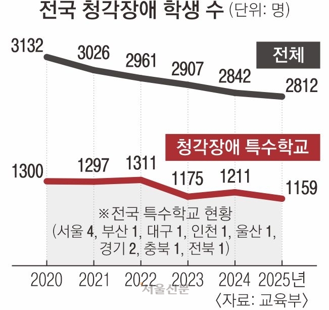 수어 교육을 받을 수 있는 환경도 충분하지 않다. 청각장애 특수학교는 최근 5년 사이 강원과 전남에서 각각 한 곳씩 문을 닫아 전국 12곳만 남았다. 이 가운데 7곳이 수도권에 집중돼 있다. 지방에서는 ‘언어 접근권’이 제한된 셈이다.